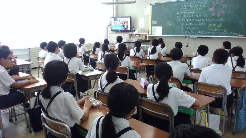 1時間目の始業式では、校長先生のお話や、生活についてのお話がありました。