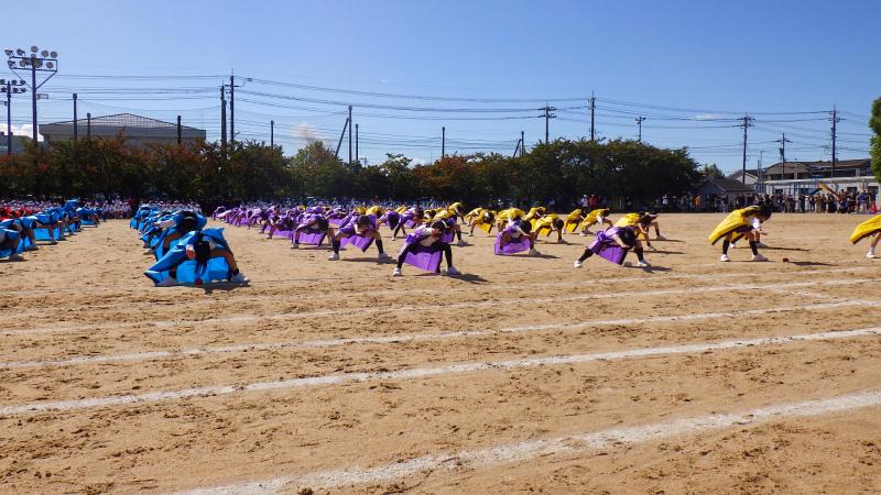中学年は、団体演技「松小ソーラン」を力いっぱいに演技しました。