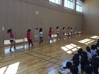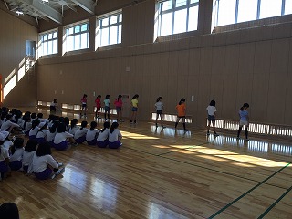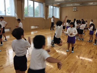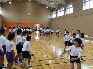 10月10日 昼休みに低学年のスポチャレ八の字がありました。