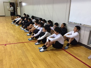 班で集まって自己紹介をし、班の活動のめあてを立てました。
