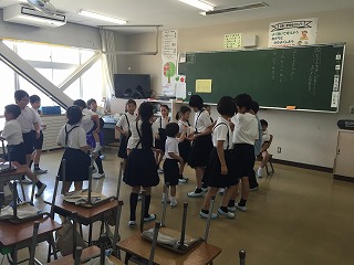 地震避難訓練と掃除場所交代日