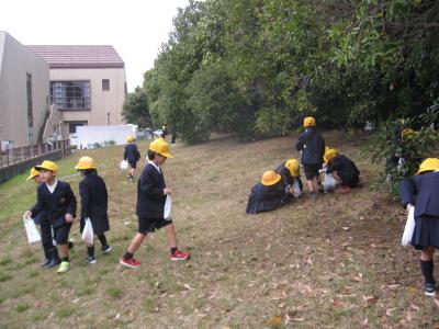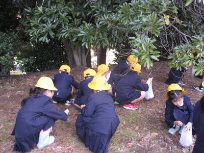 11月10日、2年生が秋見つけに若宮公園を訪れました。あいにくの雨でカッパを身に着けての散策です。しかし、子どもたちはとても意欲的です。よく見ないと見過ごしてしまいそうな中、ドングリや松ぼっくりをたくさん拾い集めていました。天気が良い休日などに今日の続きができるといいですね。