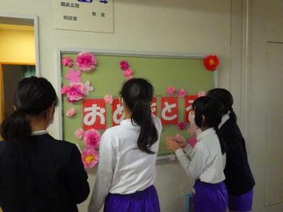 今日から、3学期がスタートしました。地震によって大変心配で悲しいスタートになりましたが、幸い本校は子供たちも教職員も全員無事でした。始業式では当たり前の幸せへの感謝について話すとともに、地震に対する不安を一人で抱え込まず相談してほしいことを確認しました。また、不安や悲しみを乗り越えて充実した3学期になるように、「確かめてGO!」をテーマとして頑張ってほしいことを伝えました。各教室には担任からのメッセージが書かれていました。1年の締めくくりの学期、目標を持って、子供たちと教職員で進んでいきます。