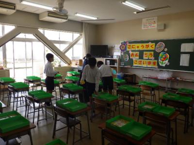 卒業式をちょうど一週間後に控え、6年生が校舎への感謝を込めて、色々な場所を掃除してくれました。玄関や廊下、特別教室、用具庫、トイレなど全員で分担しました。母校の校舎はいつまでたっても忘れられないものです。6年生の皆さんありがとうございました。