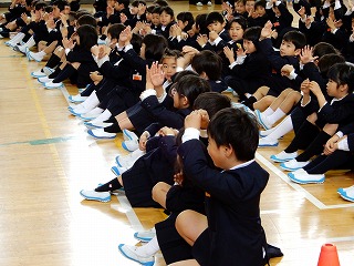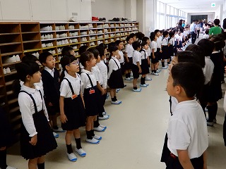 1・2年生は体育館前渡り廊下、3・5年生は3階渡り廊下、