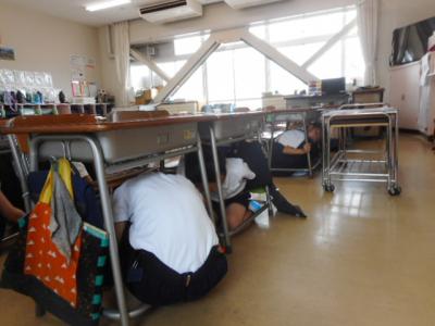 今日はシェイクアウトいしかわに参加し、地震の避難訓練を行いました。緊急地震速報を聞いて机に身を隠します。「しゃがむ」「かくれる」「じっとする」の行動がしっかりとれたようです。また、隠れる場所は、物が「落ちてこない」「倒れてこない」「動いてこない」場所がよいことも学びました。自分の命は自分で守る。命を大切にできる松任小にしていきましょう。