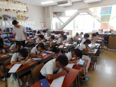21日は全校登校日です。子どもたちの元気な声を久しぶりに聞くことができました。「元気だった?夏休みを楽しんでいますか?」などと問うと、全ての子どもたちから明るい返事が返ってきました。それぞれの学年では宿題の確認をしたり、夏休みの思い出をスピーチしたりして、久しぶりの友達との時間を楽しんでいました。また、4・5年生では平和についての学習や読み聞かせが行われていました。夏休みはあと一週間ほどですが、2学期のスタートが元気よく切れるように、体調や生活リズムを整えておいてください。