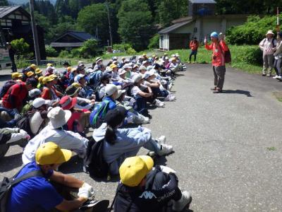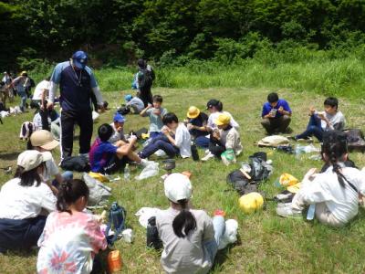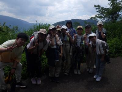 6年生が、12、13日の1泊2日で合宿(宿泊体験学習)を行いました。白山ろく少年自然の家で、「安全に最後までルールを守って自然を感じよう」を目当てとして過ごしました。1日目は、白抜山の登山から活動が始まりました。観光用ではない険しい山道を使った、片道2時間の登山です。とても大変でしたが、全員が広場まで登りきることができました。「限界~!」「今までで一番きつい!」などの言葉も聞こえてきましたが、励まし合って頑張る姿が印象的でした。その後は、バーキューの夕食、肝試しと続き、1日目が終わりました。白山市の自然、ジオパークの真ん中での体験は、小学校生活の大きな宝物となることでしょう。自然体験のすばらしさを豊かな感性で振り返るともに、そこで見つけた友達や自分のよさを今後の学校生活に活かしてほしいと思います。