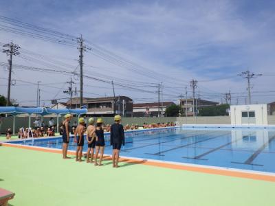 今日からプール開きです。朝の放送での諸注意の後、5年生が1番手でプールに入りました。学年のプール開きということで、実行委員の進行で水遊びを楽しみました。安全に気をつけて、体力を高めたり、泳ぎを上達させたりしてほしいと願います。