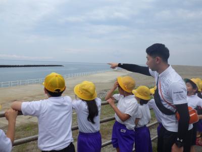 4年生のジオ学習のテーマは「水の流れ・手取川」です。今日は日本海(小舞子海岸)をスタートし、河口付近から手取川中流域までを巡る、ジオ遠足を行いました。手取川を間近で見ることができ、新しい発見の連続にワクワク感を膨らませていました。海の水、川の水の両方に足を浸し、その違いを話す子どももいたようです。ジオ学習を通してふるさと白山への愛情と誇りが持てるといいですね。