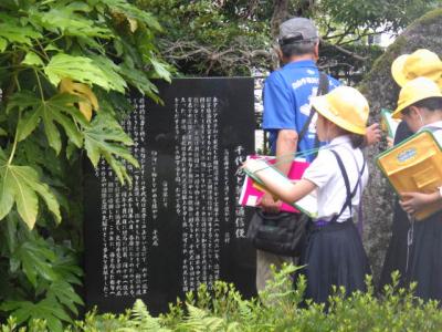 5年生のジオパーク遠足パート2が行われました。5月24日に行った1回目を経て、さらに調べたいテーマについて追究します。今回はテーマ別でグループを作り、学習支援員に指導をいただきました。行先は俳句館、城址公園、博物館、船着き場、火除けの松、お寺など。石碑を尋ねて街中巡りをするグループもありました。大テーマ「松任地区はジオパークと言えるのか?」の答えも少しずつ見えてきているのではないでしょうか。