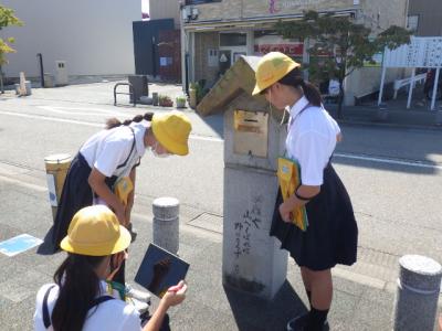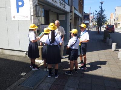 5年生は総合でジオ学習に取り組んでいます。大テーマを「松任地区はジオパークと言えるのか?」として追究を重ねています。1学期は松任地区の歴史を中心に学んできましたが、2学期からは産業に目を向けていきます。今日は「ジオに関係のあるお店を探そう」ということで、校区の商店街を小グループで見学に出かけました。約1km続く校区の商店街から、子ども達はジオをたくさん発見できたようです。今後、興味にあるものを課題としてさらに詳しく、深く追究していく予定です。また、今日は、子ども達の安全のために、6名の皆様にボランティアとして参加していただきました。見守ってくださったおかげで、子ども達は安心して見学に集中することができました。本当にありがとうござました。