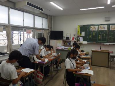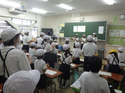 10月1日に運動会を控え、今日から朝自習の時間を使った、応援練習が始まりました。写真は6年生の応援団が中心となって、1年生に応援の仕方を教えている写真です。56年生は手分けをして、1~4年生の全ての学級の指導に行っています。今日は初めてだったので、声や拍子が合わなかったところもありますが、すぐに揃ってくることと思います。運動会に向け、全校で盛り上げていきたいですね。