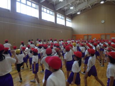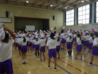 運動会の全校練習を行いました。3限目は開閉会式、4限目は応援合戦の練習です。応援合戦の練習では、5・6年生のリードで一丸となっている姿が見られました。赤も白もとてもいい声が体育館いっぱいに響き渡りました。早いもので運動会はちょうど一週間後になりました。一日一日上達しています。本番が楽しみです。
