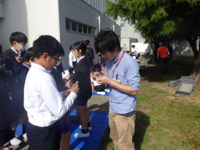 6年生が理科の学習の一環として、化石出前講座を受講しました。指導員は白山ろく少年自然の家のスタッフの皆さんです。化石についての講義を聞いた後、発掘を体験しました。子どもたちは目を凝らして化石を探し、指導員の方に化石かどうかを確認していました。植物や貝の化石をたくさん見つけることができました。化石はまさにジオ学習。水と石の力でできた大地の歴史の証人ですね。