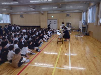 今日のお昼休みに琴のミニ演奏会が行われました。企画してくださったのは学校ボランティアの角田さんです。角田さんは琴を嗜まれており、一緒に練習している本校の5年生に声をかけてくださり実現しました。当日予告の演奏会でしたがたくさんの子どもたちが集まりその音色に聞き入りました。とても和やかな気持ちになりました。角田さんありがとうございました。
