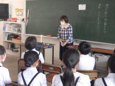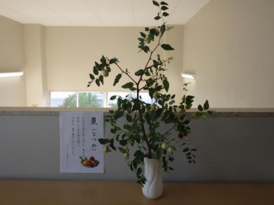 近くの商店街にある「ギャラリー千代堂」の方が、学校に棗の木を持ってきてくださいました。ギャラリー千代堂は、俳人千代女の住まいがあった場所です。お店の裏手には、千代女が住んでいた300年以上前の頃からこの棗の木があり、「木からもものこぼるる音や秋の風」の秀句を生んだ木ともされています。5年生は松任地区のジオの追究のため、何度かギャラリー千代堂を訪問し、お話を聞かせていただいています。そんなご縁から、今年新しく実を付けた棗の枝を学校に持ってきてくれたのでした。改めて松任地区の貴重な歴史に触れるとともに、地域の皆様の温かいお心遣いに感激をしているところです。本当にありがとうございました。