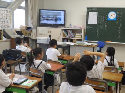 10月8日に行われる「運動会」のスローガンが決定しました。今年のスローガンは「一人一人が主役だ!ベストをつくせ! ~最高の思い出~」です。1学期に各学級から募集したアイディアを、児童会運営員会で調整し、今日PCの中継を使って発表されました。同時に、赤白青の各応援団から運動会への思いを込めた自己紹介もありました。運動会の練習は22日ごろから本格化する予定ですが、スローガンに込めた思いが実現するように取り組んでほしいと思います。保護者の皆様にはどうかご支援をお願いいたします。