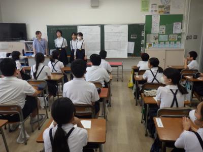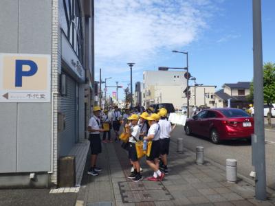5年生は総合で松任地区を調査・追究しています。1学期は歴史や文化にスポットを当てて追究を行ってきましたが、2学期は産業に目を向ける予定です。今日は近くのなかまち商店街でフィールドワークを行いました。心に残ったお店を中心に整理し、さらに詳しく調査を行うための計画につなげます。「松任地区はジオパークなのか?」のテーマに向かって主体的に学習を進めてほしいと願います。なお、本日、安全見守りにご協力をいただきました保護者の皆様には深く感謝を申し上げます。お忙しい中ありがとうございました。