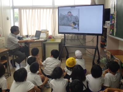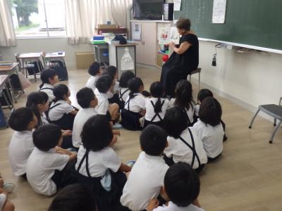 読育の一環で今年から始めている「朝の読み聞かせ」。たくさんの図書ボランティアの皆様にご来校いただき、今日、2回目を開催しました。先生方も、担任ではない学級で読み聞かせます。ボランティアの方が民話をお話された学級もありました。どの子どもたちも引き込まれるように聞いていました。特に、高学年が絵本の世界に引き込まれている様子を見て、この活動のすばらしさを感じました。「感性のびのび」進行中です!
