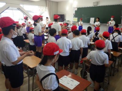 10月8日は運動会。そこを目指して今日から本格的な準備・練習期間に入りました。朝は各教室で応援練習がありました。5・6年の応援団が中心となって1~4年生の教室に赴き、応援合戦の演技を教えます。初めての練習とあって十分な声出しまでにはもう一息ですが、下級生をまとめようとする5・6年生の意気込みをとても感じることができました。6限の時間帯は係会を行いました。放送運営・得点・決勝審判・ライン・出発体操・用具等の係に分かれ、それぞれで仕事の分担などを行いました。プログラム係では、掲示用スローガンの作成に取り組みました。運動会までちょうど2週間、今後は各ブロックの団体演技の練習にも力が入ります。「みんなが主役の楽しい運動会」となるよう、心と力を合わせて準備を進めていきましょう。