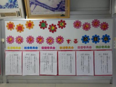 11月に入り後期の児童会委員会が発足しましたが、今日は朝の時間を使って放送による委員会紹介がありました。後期の児童会スローガンは「前向き 楽しく みんなで レベルアップ」です。委員会では、学校生活に役立つ日常の仕事や、委員会の特徴を生かした行事や取組を計画・実施します。前期は、5・6年生の頑張りで、自分達の学校を自分達でよりよくなるように努力してきました。後期はそれにとどまることなく、みんなでレベルアップしたいとする、素晴らしいスローガンだと思います。みんなで楽しい学校を作っていきましょう。