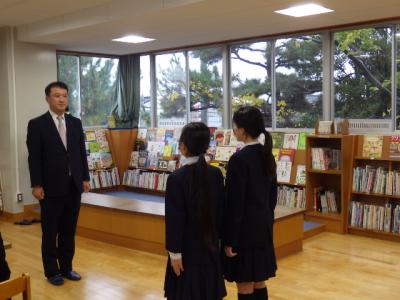 真柄教育振興財団(真柄建設)様より図書の寄贈を受けました。真柄教育振興財団では平成元年より、年間約10校に対して寄贈を行っているとのことです。今日は贈呈式のために真柄理事長(社長)様が来校されました。真柄様からは「たくさん本を読んで想像力豊かな人になってほしい」とお言葉をいただきました。本校の読育(読書活動、調べ学習等)の充実のために大いに活用させていただきます。本当にありがとうございました。