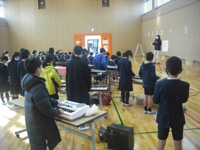 各クラスが一堂に会して演奏するのは初めてだったので,リハーサルでは音を合わせるのに苦労したようでしたが,本番のビデオ撮りではきれいな音色を奏でることができました。