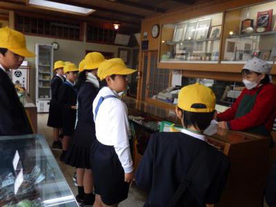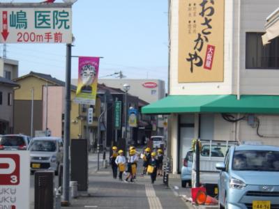 2年生が生活科で町探検を行いました。今年の町探検は地域・保護者の皆様との連携による学習で、15もの店舗・施設の協力を得て実施することができました。コミュニティ・スクールとしての取組であり、ジオ学習の一環でもあります。町探検の舞台は、校区にある「まっとうまちなか商店街」が中心です。クラスごとに見学する従来型の町探検を見直し、子どもたちが4~5名の小グループになって、見たいお店を見たい順番で回るスタイルとしたところがポイントです。また、子どもたちの安全確保のために、約20名の保護者の皆様に要所で見守りをいただきました。子どもたちだけでお店を回るということで、初めは緊張した様子でしたが、お店の方々の温かい関わりのお陰で、楽しくたくましく学習することができました。「どんなお店があるかを知る」というねらいを達成し、「もっと深く知りたいお店」を絞れたようです。次の探検は2週間後の11月20日です。しっかり準備してさらに学習を深めてほしいと思います。今回ご協力いただいた皆様、本当にありがとうございました。2回目もどうかよろしくお願いいたします。