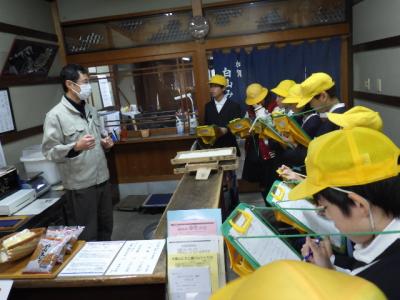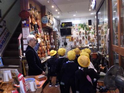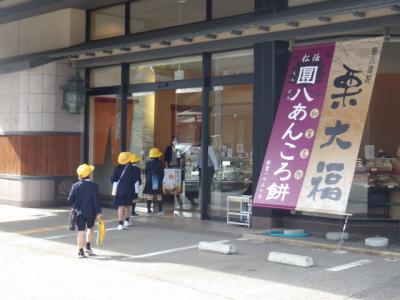 5年生のジオ学習は松任地区を舞台として進めています。追究のテーマは「松任地区はジオパークと言えるのか?」です。1学期は、歴史や文化、自然を視点にジオ遠足を行い、考えをまとめてきました。2学期は産業を視点に、地域の商店街の協力を得ての追究です。各店舗にはジオに関係する事柄があるのかを、見学やインタビューを通して見つけていきます。たくさんの質問を行い、考えを広げることができたようです。地域の皆様、お忙しい中、学習にご協力いただき誠にありがとうございました。