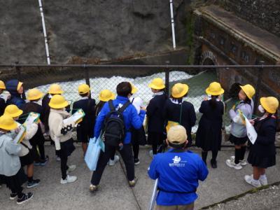 4年生のジオ遠足は「七か用水」の大水門、給水口、管理センターを巡って、「水」について考えます。また、社会科の「郷土の先人」枝権兵衛氏を学ぶという目的も兼ねています。白山市はもちろん、金沢平野に広がる七か用水の出発点に子どもたちはどのような感想を持ったでしょうか。白山手取川ジオパークのど真ん中での体験です。しっかりと整理し、次の松任地区の用水のジオ遠足につなげてほしいと思います。
