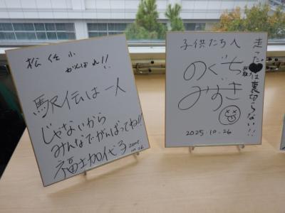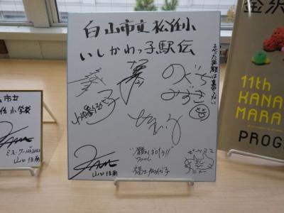 11月1日、「いしかわっ子駅伝交流大会」に男女各チームが出場しました。雨予想で開催自体が心配されたほどでしたが、時折晴れ間が見られた絶好のコンディションとなりました。松任小学校の選手10名は、全員大幅に自己ベストを更新して、タスキをつなぎ切りました。どの子のからも「参加してよかった」「力を出し切れた」「楽しかった」の言葉を聞くことができました。5年生は「来年も出たい!」と意欲満々でした。今回、大変久しぶり(前回出場の記録・記憶がないくらい久しぶりです)でしたが、このチャレンジは本当に素晴らしいことだと思いました。応援してくださった保護者の皆様、ありがとうございました。なお、松任小学校の出場にあたり、野口選手や福士選手ら、たくさんのオリンピアの皆様から応援メッセージが届いておりました。これも感激です。