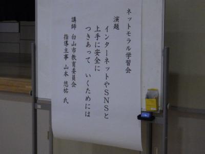 授業参観の後、6限目には、56年生と保護者の皆様を対象にネットモラル学習会を開催しました。白山市教育委員会の山本先生をお招きし、インターネットやSNSのリスクを学び、望ましいつき合い方について考えました。ハッとするような事例を紹介していただいたり、所々で話し合ったり発表したりする場を作っていただいたりしたことで、子どもたちには真剣に自分事として学ぶ様子がよく見られました。「自分の使い方を見直したい」「ネットの向こう側を想像し注意して使いたい」等の感想を持てたようです。今年は多くの保護者の皆様に参加いただき、親子で考えるきっかけになればと思っています。最後になりますが、素晴らしいご指導をしてくださった山本先生に深く感謝を申し上げます。