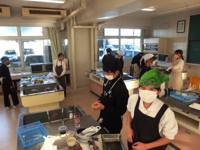 1年生の家庭科では、豚肉の生姜焼き作りを行っています。甘しょっぱい香りが校舎に漂っています。上手に焼けたようです。