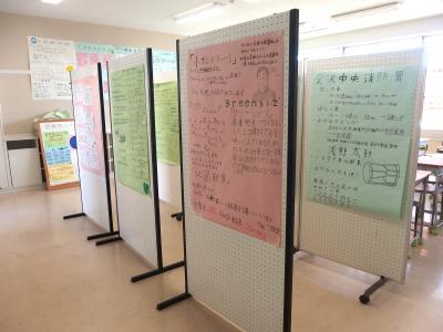 2年生の空き教室に、職場見学で学んだことをまとめた掲示物を展示しています。来週の保護者懇談で保護者の方が来校された際にも見学できます。