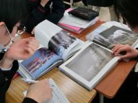 3年英語の授業の中で、星野道夫さんの本を紹介し、紹介後は実際に写真集や著書を読みました。生徒たちは「シロクマかわいい」「熊の爪鋭い…」「どうやってこの写真を撮ったんだろう…」などと驚きながら、星野さんの世界に没頭していました。授業の終わりには感想を書きました。「星野さんの写真はダイレクトに自然を感じさせるものだと思います。こういう本に出会うためには、自分からたくさんの本を読んでいくことが大切だと思います。だから1日10分でも本を読むことはすごく大切だと思います。星野さんのように、何がきっかけで魅力を感じるのかわからないので、読書は自分の世界を広げるとても大事なものだと思いました。」「世界はとても広いと思った。今、自分達が暮らしているのは地球のほんの一部であって全てではない。今の段階で自分の未来をはっきり決めようとするより、見方を広げてから考えていく方が、より自分に合うものが見つけられるのではないかと思った。」10代の今、星野道夫さんの本を読み、これからの自分の生き方を考えていく一助にしてほしいと思います。