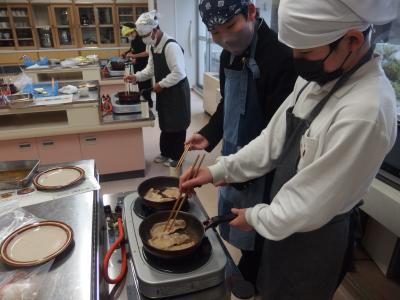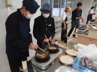 1年生の家庭科では調理実習として、豚肉の生姜焼きを作って食べています。調理室の周りでは、醤油と生姜の香ばしいにおいが漂っています。生姜焼きを食べた生徒たちから「とってもおいしい」との声が聞かれました。