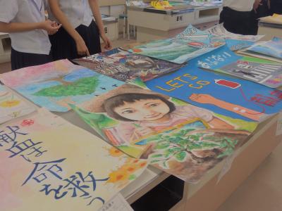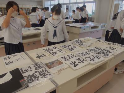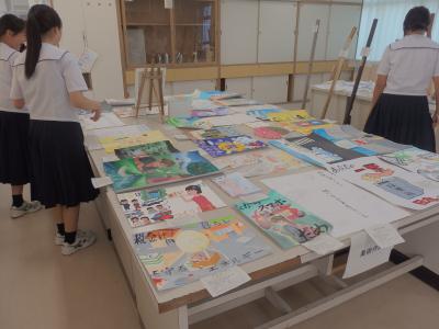 夏休みの自由研究等の作品を展示しています。昼休みは自由に見ることができ、バラエティー豊かな作品を鑑賞しています。