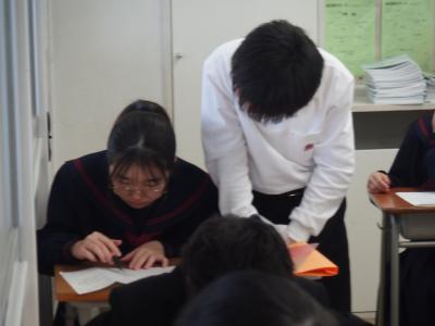 2年生の社会では災害からの復興について、音楽では「翼をください」のパート練習を行っています。