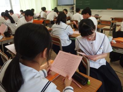 3年生は私立高校説明会を行っています。北陸学院、星稜、遊学館、金沢学院、龍谷、金沢高校の先生から各校の特色について説明を受けています。