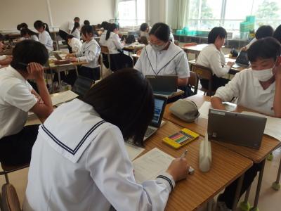 3年生の体育は長距離走のタイム計測です。暑い中、一生懸命走っています。美術では好きな仏像について紹介し合っています。