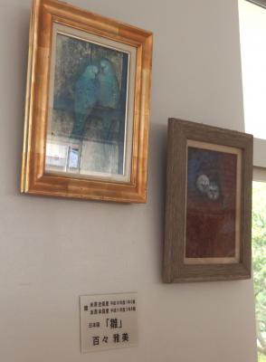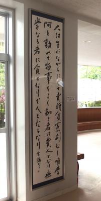 本校には、廊下や階段に寄贈されたたくさんの美術作品が飾られており、感性を育てる学習環境となっています。中には本校に現在勤務している先生の作品も飾っています。例えば、生徒玄関前には英語の先生の書や、美術の先生の絵画があります。