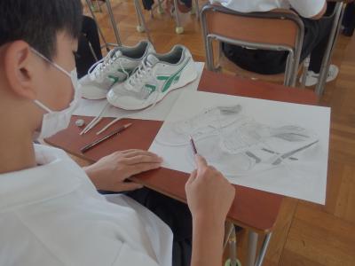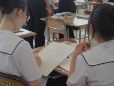 3年生の美術では自画像を描いています。