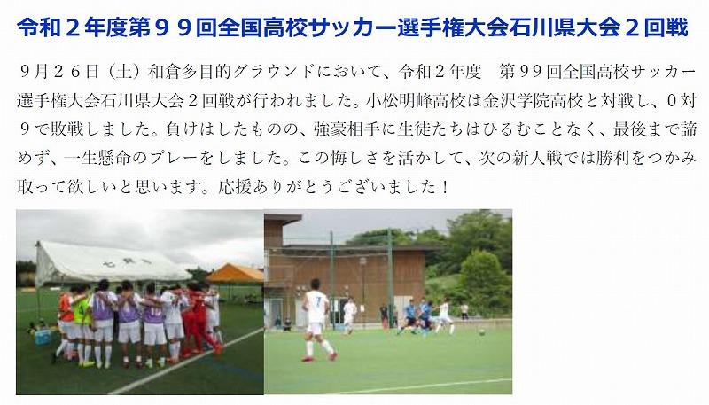 第99回全国高校サッカー選手権大会石川県大会 結果報告