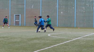 あられが降る極寒、強風の中,表情は固まっていましたが、ボールを蹴り始めるとみんな笑顔になっていました。