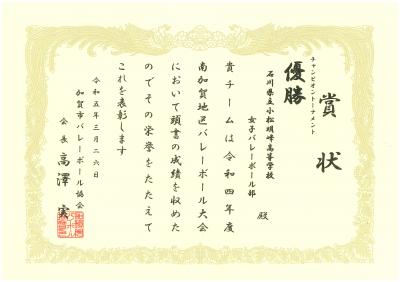 3月26日(日)に山中健民体育館で開催された加賀地区大会で見事、優勝を勝ち取りました。