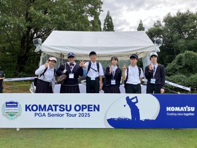 10月4日に小松カントリークラブで開催されたコマツオープン2025のスタートアナウンスをしてきました。フリーアナウンサーの高橋ゆみこさん指導の下,選手の名前や所属を読み上げました。初めての経験で生徒たちは緊張していましたが,丁寧に読み上げていました。最後は楽しかったという声も聴けました。