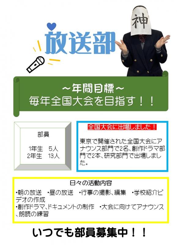 2月8日と9日に行われる第21回北信越選抜放送大会石川大会に本校から2名が参加します。