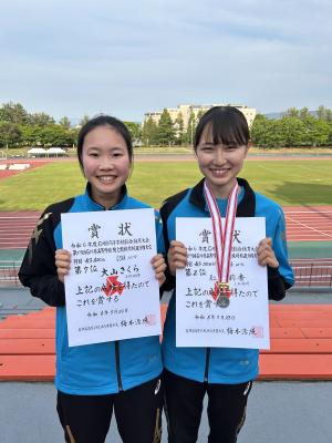 雨が降る中でしたが、3年生喜多将太郎さんが男子800m5位、要明栞和さんが女子七種競技4位に入賞しました。二人は3週間後に福井で開催される北信越大会に出場します。