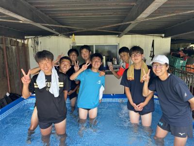 時には氷で手足や首を冷やしながら練習をします。新キャプテンの方針の下、各自の技術向上に向けて練習をしています。